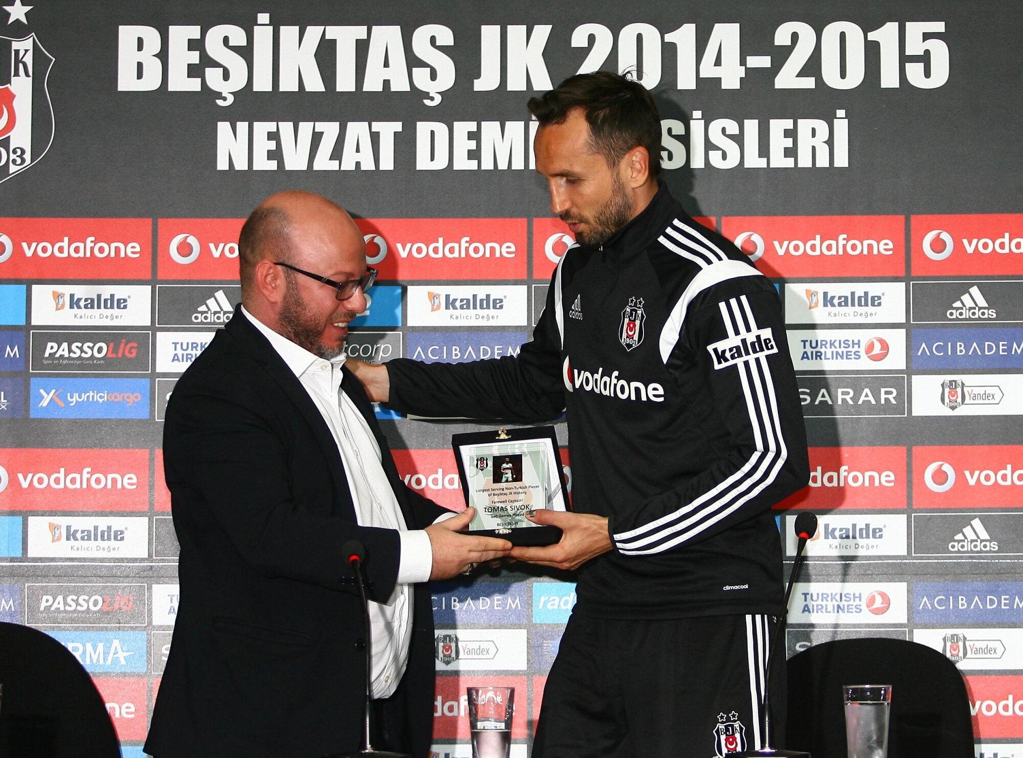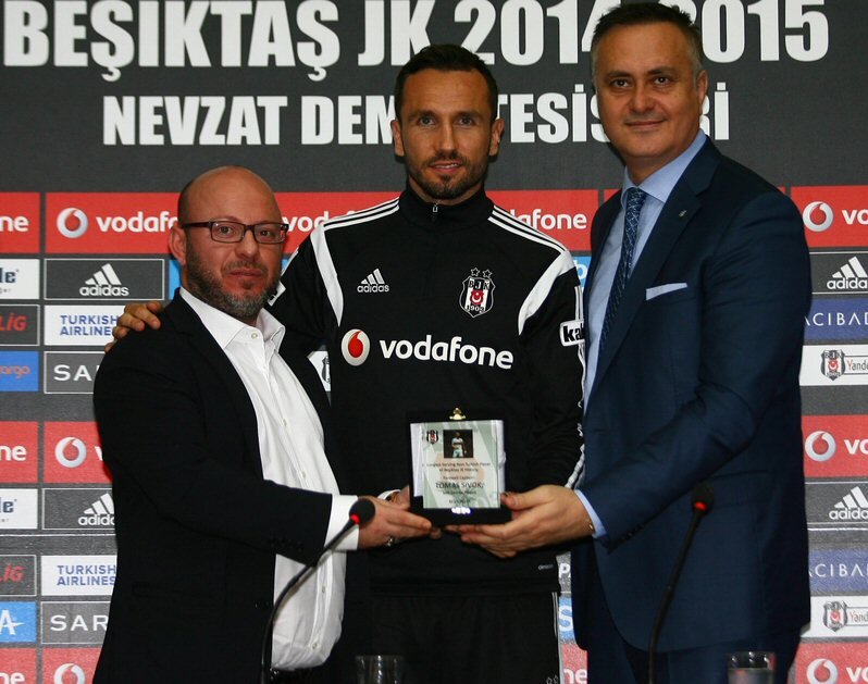 Toplantının ardından Mete Vardar, Tomas Sivok'a hizmetlerinden dolayı bir plaket verdi.