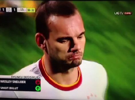 Borussia Dortmund maçında teknik direktör Cesare Prandelli ile kriz yaşayan Hollandalı yıldız, Karabükspor maçının 67. dakikasında saha kenera alınmasına da jest ve mimikleri ile tepki gösterdi. Karşılaşmanın 67. dakikasında saha kenarında kalkan tabelada kendi numarasını gören Sneijder, 'şaşırmış' bir ifade ile saha kenarına gelirken; yedek kulübesine otururken de bu ifadesini sürdürdü.