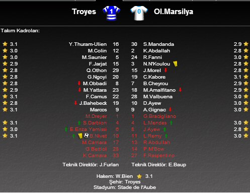 Bu sonuçla birlikte ligde Marsilya 19 puanda kalırken, Troyes ile puanını 5'e çıkardı.