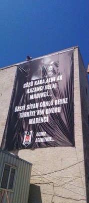 - Vodafone Arena işçileri de, hayatını kaybeden kömür işçilerine destek verdi. Arena inşaatına "SOMA" yazısı yazıldı, duvara da Soma için "Gözü kara, alnı ak, kazancı helal madenci... Üzeri siyah, gönlü beyaz Türkiye'nin onuru madenci... Acınız acımızdır" pankart asıldı.