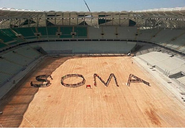 - Konyaspor'un önümüzdeki sezonda maçlarını oynayacağı Yeni Konya Stadı çalışanları da Soma'yı unutmadı ve sahaya işçiler tarafından "SOMA" yazısı yazılarak, destek verildi.