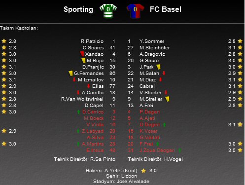 UEFA Avrupa Ligi G grubu karşılaşmasında Portekiz ekibi Sporting Lizbon evinde İsviçre temsilcisi Basel'i ağırladı.