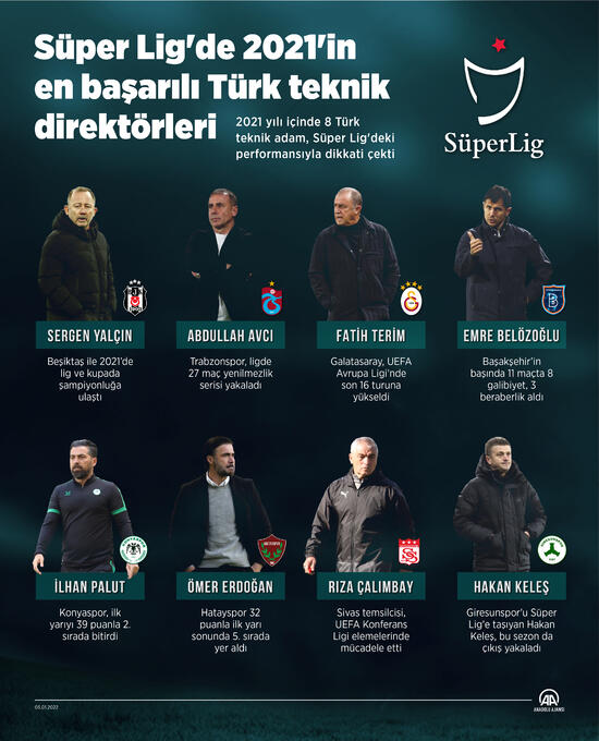 Süper Lig'de geride kalan yıl Sergen Yalçın, Abdullah Avcı, Fatih Terim, Emre Belözoğlu, İlhan Palut, Ömer Erdoğan, Rıza Çalımbay ve Hakan Keleş, başarılı performanslarıyla ön plana çıktı.