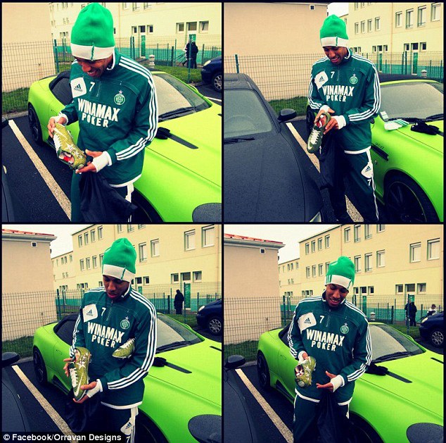 Saint-Etienne forması giyen Gabonlu Pierre-Emerick Aubameyang'ın pahalı oyuncağı ise üzerinde 4500 Swarovski taşının bulunduğu yaklaşık 2500 strelin değerinde bir krampon.