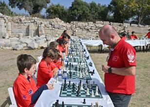 Türkiye Satranç Federasyonu (TSF) ve İş Bankası iş birliğiyle İzmir'in Seferihisar ilçesinde düzenlenen Teos Satranç Şenliği'nde Büyük Usta Cemil Aghamaliyev, 24 öğrenci ile maç yaptı.