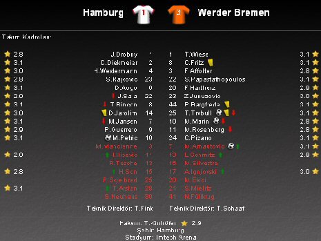 Almanya Bundesliga'nın 22. haftasında temsilcimiz Gökhan Töre'nin sakatlığı nedeniyle forma giymediği karşılaşmada Hamburg evinde Werder Bremen'i ağırladı. Hamburg Arena'da oynanan karşılaşmadan deplasman ekibi 2-1'lik skorla galip ayrıldı.
