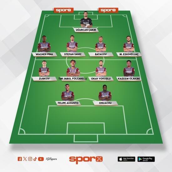 Trabzonspor: Uğurcan, Pina, Savic, Batagov, Mustafa, Zubkov, Folcarelli, Okay, Olaigbe, Augusto, Onuachu.