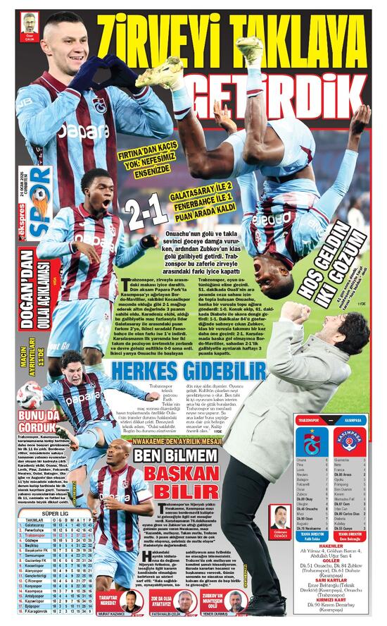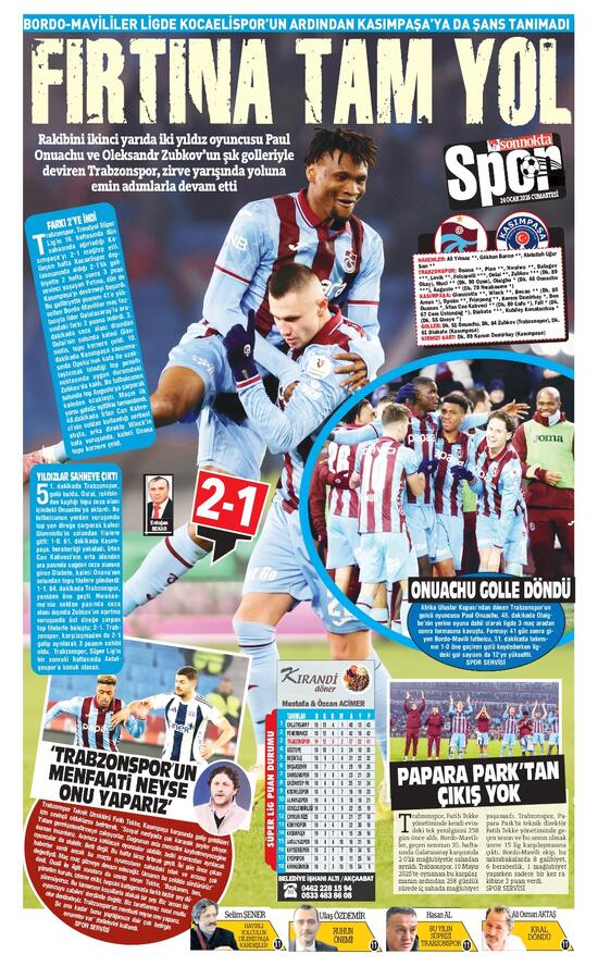 Öte yandan Trabzon'da yayın yapan yerel gazeteler de Kasımpaşa karşısında alınan galibiyeti manşetlerine farklı başlıklarla taşıdı. Yerel basında öne çıkan başlıklar şu şekilde
