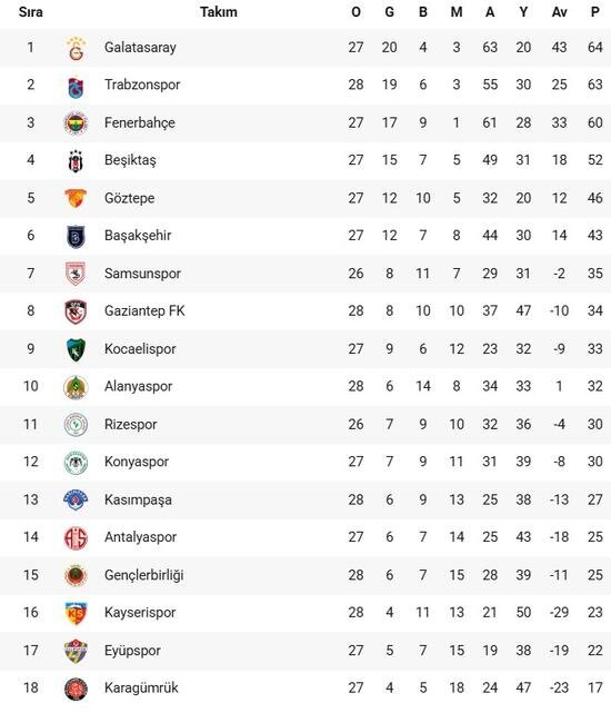 Trendyol Süper Lig'in 28. haftasında Trabzonspor, Galatasaray'ı 2-1 mağlup etti.