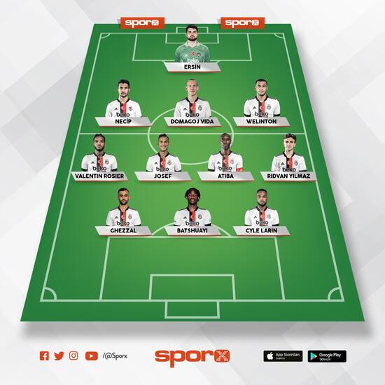 Beşiktaş: Ersin, Necip, Vida, Welinton, Rosier, Rıdvan, Josef de Souza, Atiba, Ghezzal, Larin, Batshuayi.