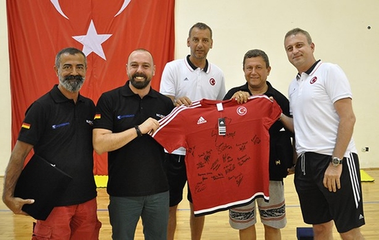 Millilerimiz ise tüm turnuva hazırlığı ve Berlin’deki turnuva boyunca Vacumed - Vacusport Rejenerasyon cihazını, oyuncuların kullanımına sunmasından dolayı Nurel Medikal - Weyergans İş Geliştirme & İnovasyon Müdürü Burak Coşkun ve ekibine teşekkür plaketinin yanı sıra A Milli Takım oyuncularının imzaladığı Ay Yıldızlı formayı verdi.