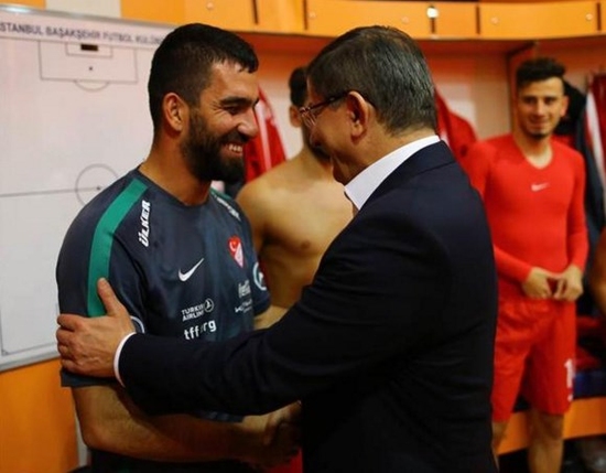 Başbakan Ahmet Davutoğlu'na, Gençlik ve Spor Bakanı Akif Çağatay Kılıç ve Türkiye Futbol Federasyonu Başkanı Yıldırım Demirören eşlik ederken Davutoğlu'nu ve beraberindekileri soyunma odasında Türkiye Futbol Direktörü Fatih Terim karşıladı.