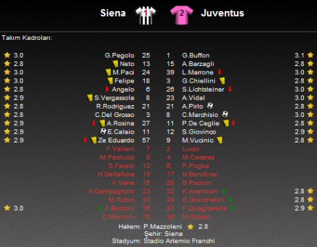 İtalya Serie A'da 7. hafta mücadelesinde Siena ile Juventus kozlarını paylaştı. Artemio Franchi Stadı'nda oynanan karşılaşma konuk ekibin 2-1'lik üstülüğü ile sona erdi.