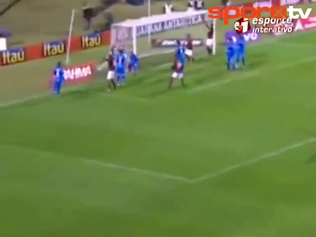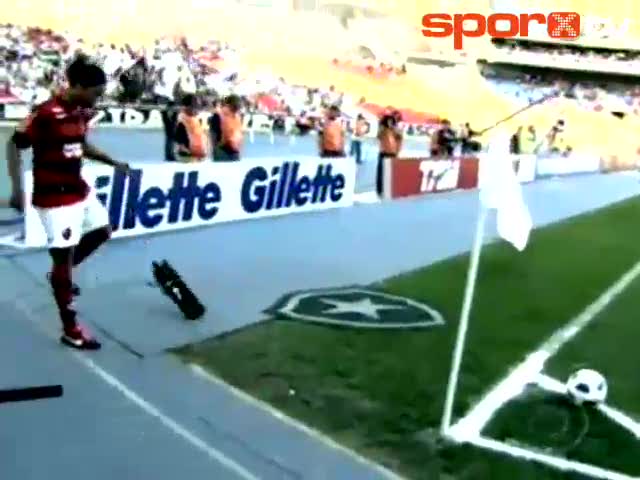 Brezilya'nın Flamengo takımında oynayan dünyaca ünlü yıldız Ronaldinho bir korner atışı sırasında ayağına takılan mikrofonla bir türlü anlaşamadı.