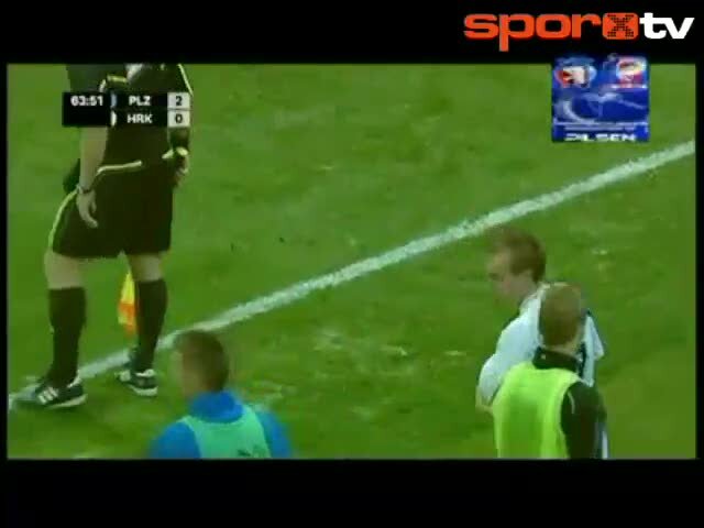 Çek Cumhuriyetinde oynanan Viktoria Plzen - Hradec Kralove maçında ev sahibi ekibin başarılı oyuncusu Milan Petrzela maçın 64. dakikasında attığı güze...