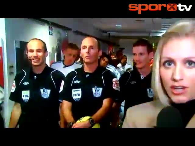 İngiltere Premier Lig'te Swansea ile Manchester United arasında oynanacak olan maç öncesi sahaya çıkmak için bekleyen futbolcuların önünde duran hakem...