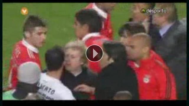 Portekiz Ligi'nde Benfica, Nacional Madeira karşı karşıya geldi. Sahadan Benfica 4-2'lik galibiyet ile ayrılırken maç sonrası tatsız anlar yaşandı.Benficalı bir yönetici ve Nacional Madeira futbolcu arasında bir tartışma meydana geldi işte o anlar.Yorumlar