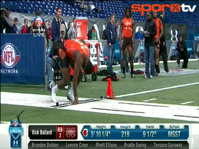 Amerikan futbolu takımlarından Mississippi State'nin yıldızı Vick Ballard antrenman sırasında en iyi yaptığı işlerden biri olan koşma çalışması sırası...