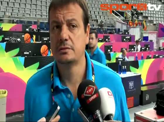 A Milli Basketbol takımı hocası Ergin Ataman Avustralya ile oynayacakları karşılaşma öncesi maçın oynanacağı San Jordi spor salonunda taktik çalışması...