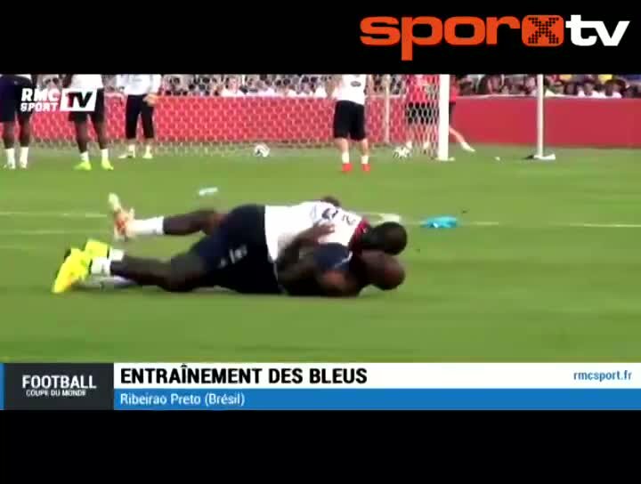 Son yapılan Fransa milli takım antrenmanında Liverpool'lu Sakho ve Lille oyuncusu Rio Mavuba'nın saha ortasında yerde sarılıp yuvarlanmaları izleyenle...