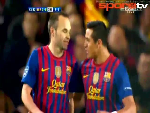 Şampiyonlar ligi yarı finalinde oynanan Barcelona - Chelsea maçında ev sahibi ekip Barcelona Andres Iniesta'nın 43. dakikada attığı gol ile skoru 2-0 ...