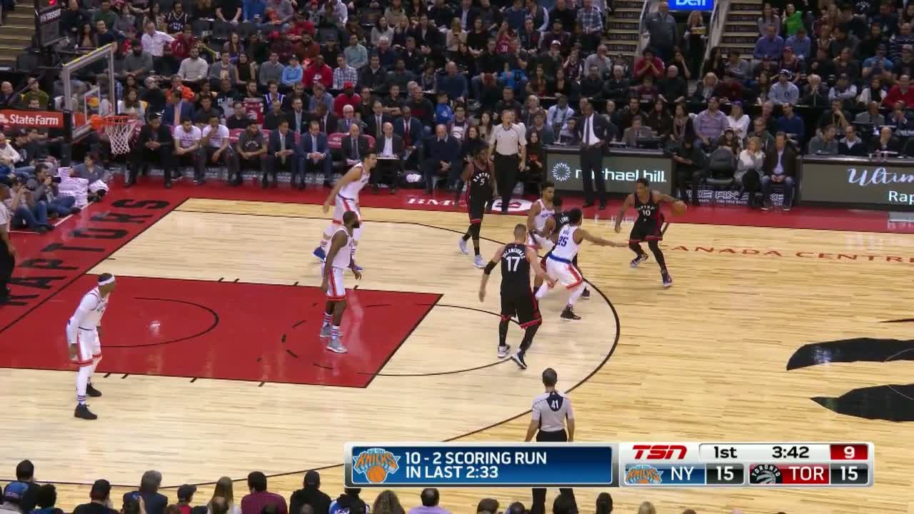 Toronto Raptors yıldızı DeMar DeRozan, New York Knicks'e karşı 23 sayı, 5 ribaund ve 5 asistle oynadı.