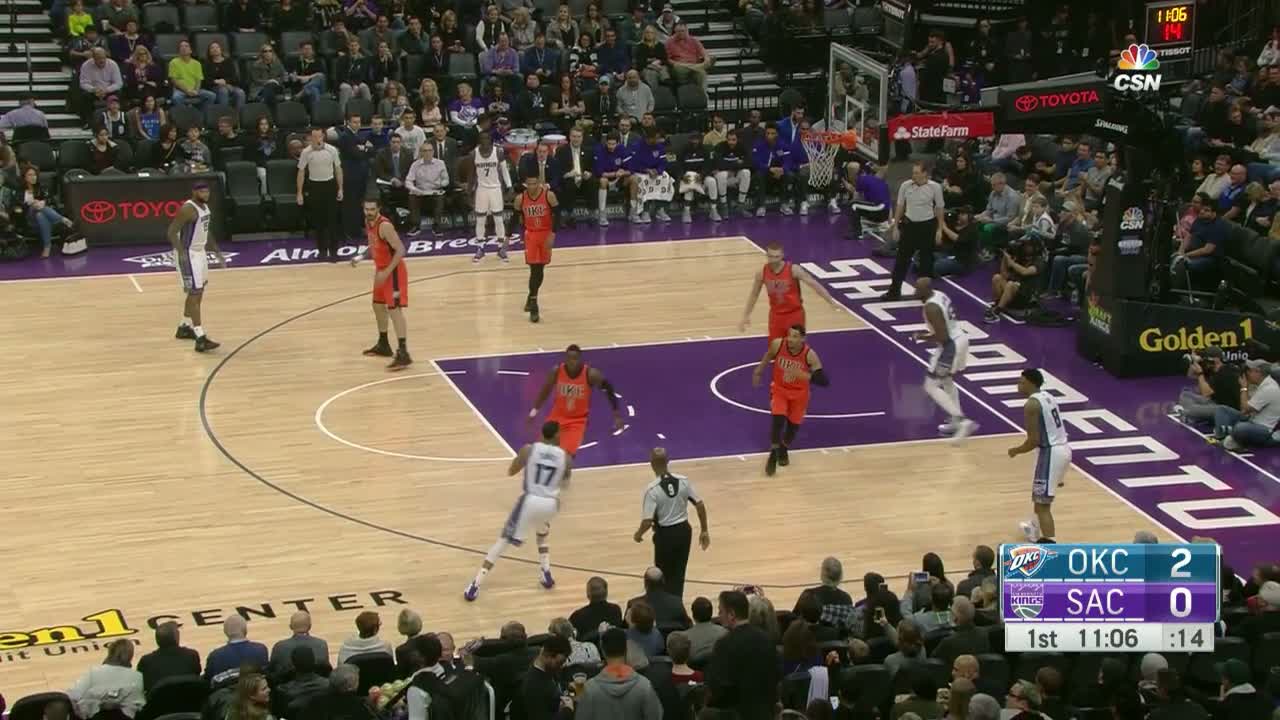 Sacramento Kings yıldızı DeMarcus Cousins, Oklahoma City Thunder karşısında 31 sayı, 11 ribaund, 7 asist ve 3 top çalma ile oynadı.