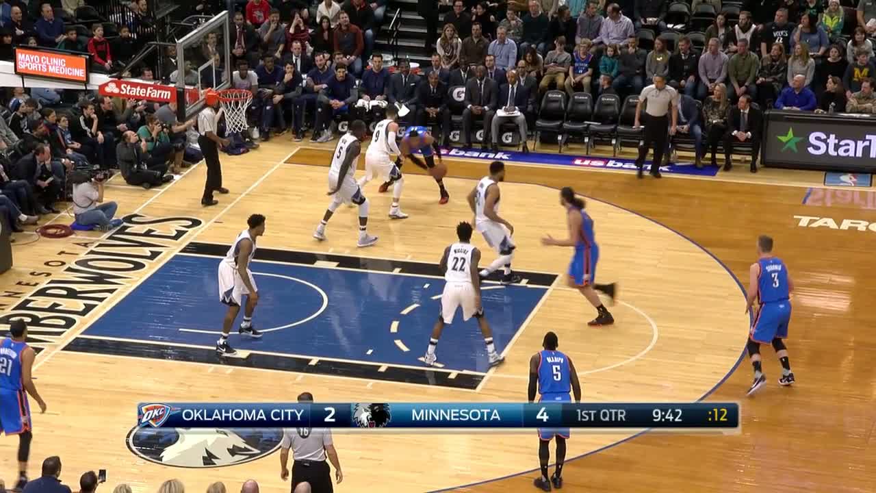 Minnesota Timberwolves yıldızı Karl-Anthony Towns, Oklahoma City Thunder'a karşı 29 sayı, 17 ribaund, 2 top çalma ve 3 blokla oynadı.