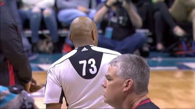 Russell Westbrook, OKC - Hornets maçının ilk çeyreğinin bitimine 3:13 kala OKC'nin aldığı mola sonrası topu hakem Tre Maddox'a iletmek için kendisine ...