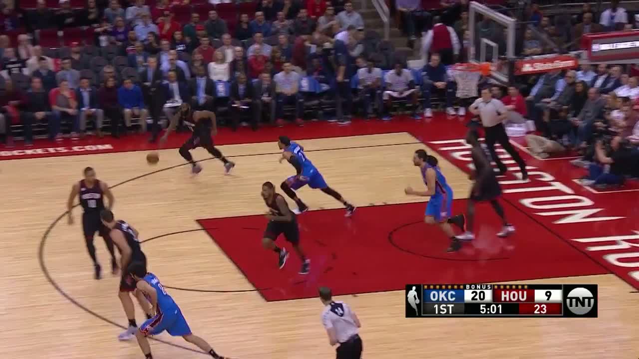 Houston Rockets süperstarı James Harden, Oklahoma City Thunder karşısında 26 sayı, 12 asist ve 8 ribaund ile mücadele etti.