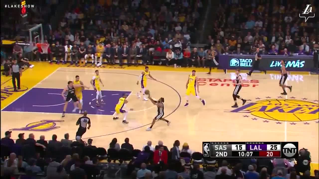 Los Angeles Lakers çaylağı Lonzo Ball, San Antonio Spurs'e karşı 18 sayı, 10 ribaund, 6 asist ve 4 top çalma ile oynadı.