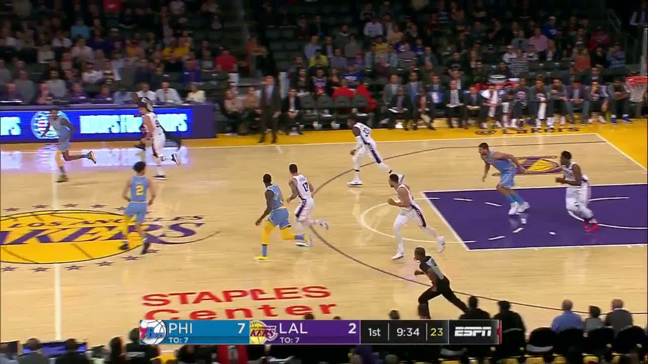 Joel Embiid, LA'de 46 sayı, 15 ribaund, 7 asist ve 7 blokla şov yaptı ve Ben Simmons da 18 sayı, 10 asist ve 9 ribaundla triple-double'ın kıyısından g...
