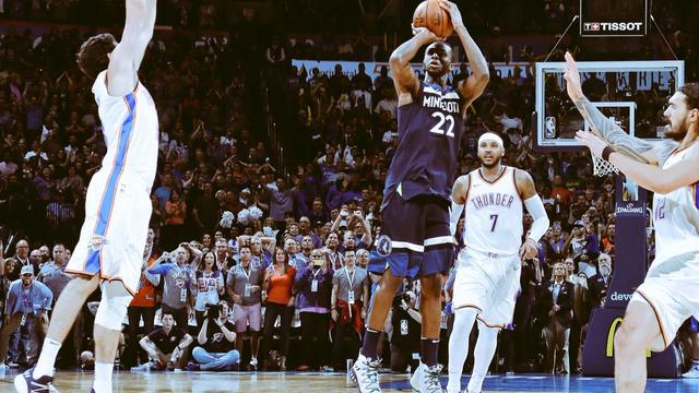 Minnesota Timberwolves yıldızı Andrew Wiggins, Oklahoma City Thunder'a karşı maç kazandıran basketle birlikte 27 sayı, 7 ribaund, 4 asist ve 2 top çal...