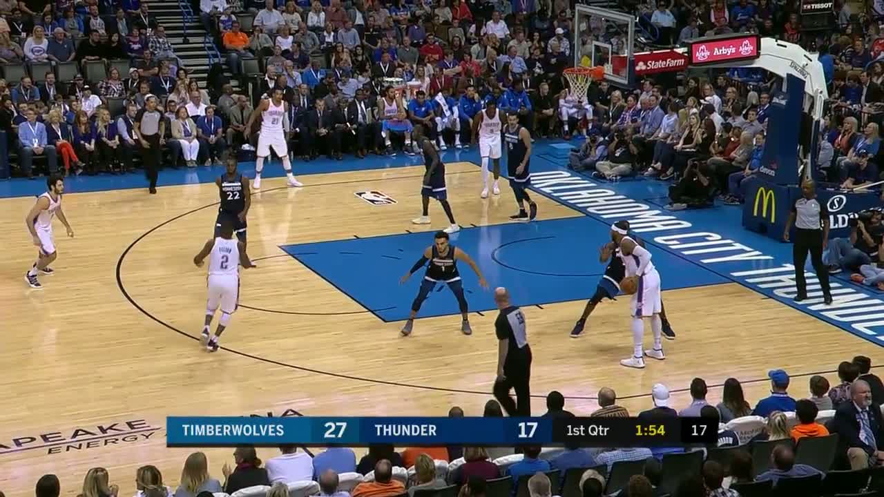 Steven Adams ribaundı alıyor ve tam saha pası Russell Westbrook'a smacı için yolluyor!.