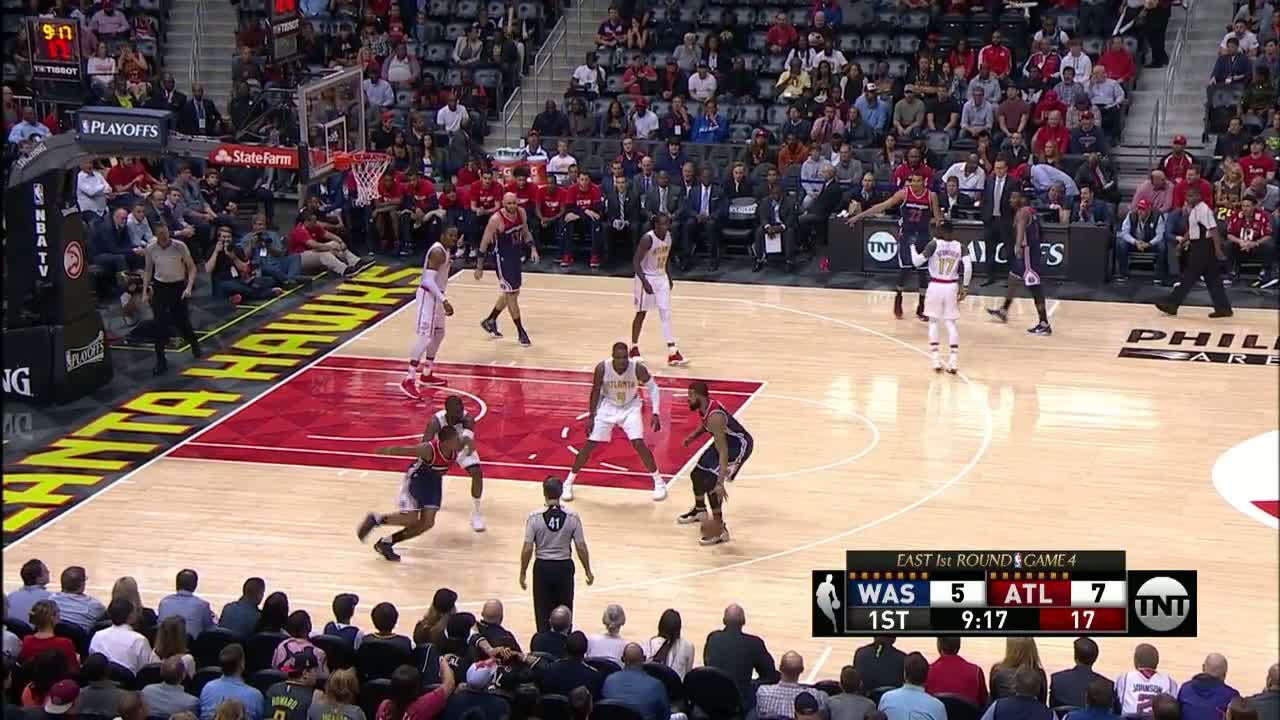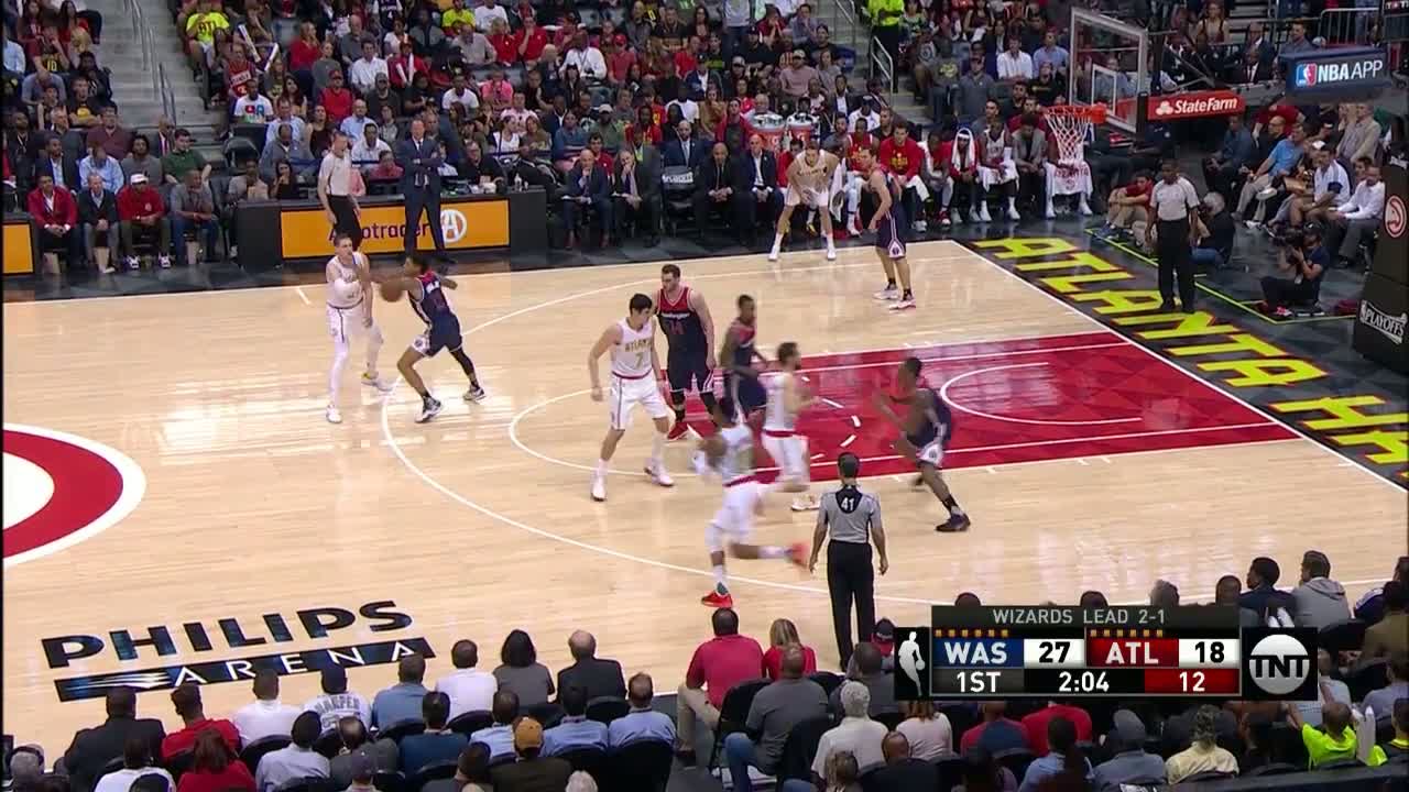 Kent Bazemore pas arası yapıyor ve John Wall arkasındayken turnikeyi atıyor.
