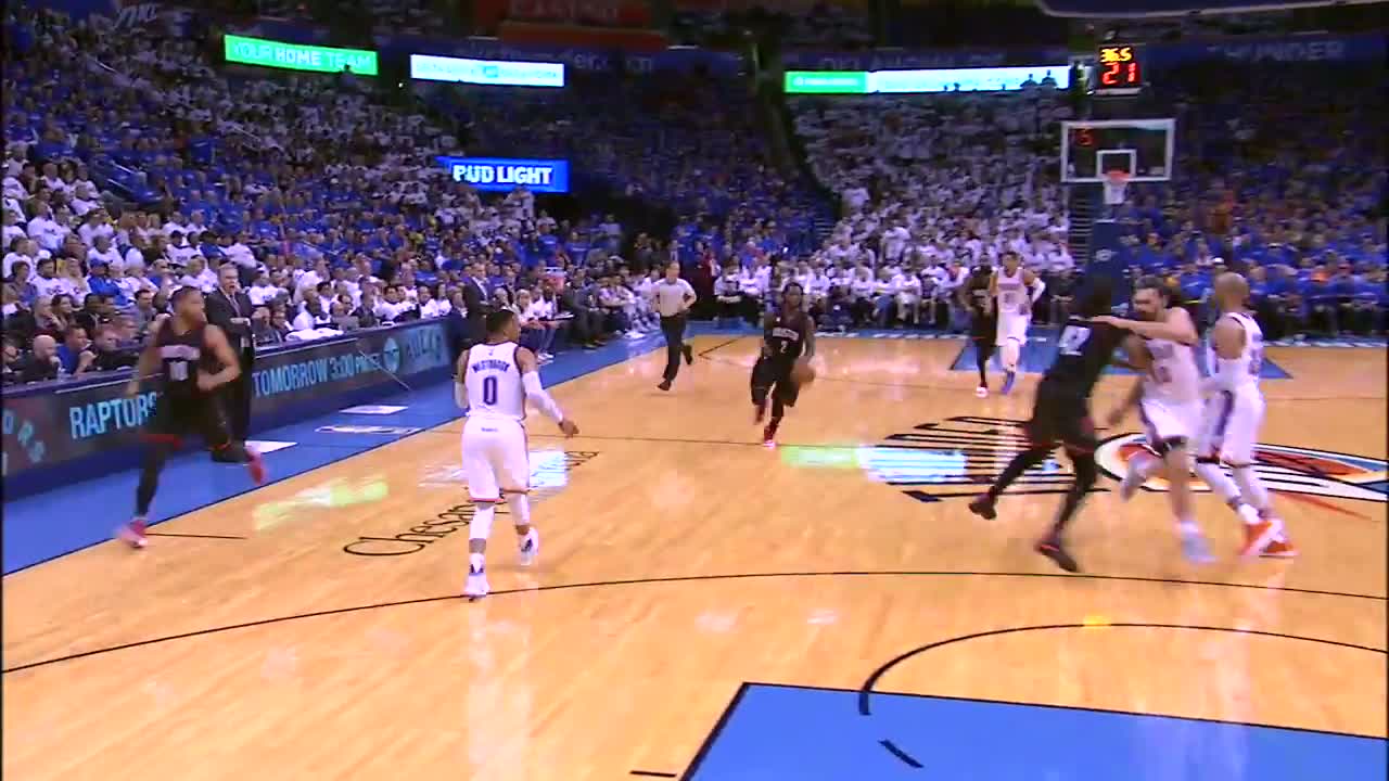 Houston Rockets point guardı Patrick Beverley, bir OKC taraftarının saha kenarından yaptığı hareketlere bu şekilde tepki verdi.