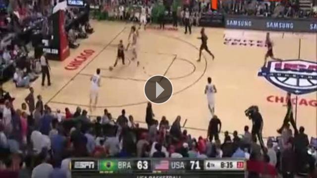 Chicago'da oynanan Amerika Birleşik Devletleri-Brezilya maçında Amerikalı pivot Anthony Davis bir pozisyonda topu oyunda tutmak isterken taraftarların üstüne düştü.Yorumlar