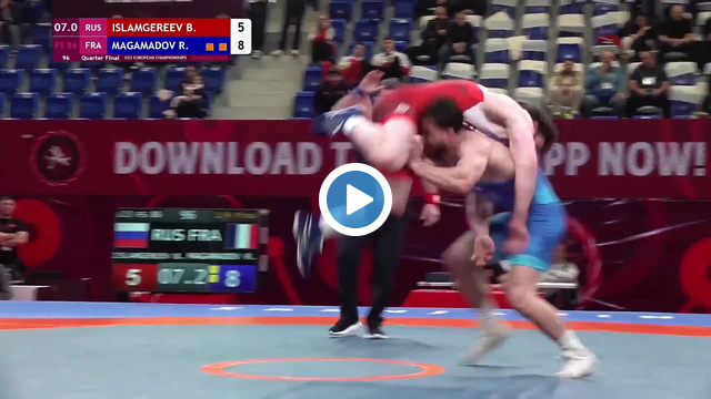 Rus güreşçi Islamgereev, maçın son anlarında 'uçan sincap' tekniğiyle rakibini tuş etti.