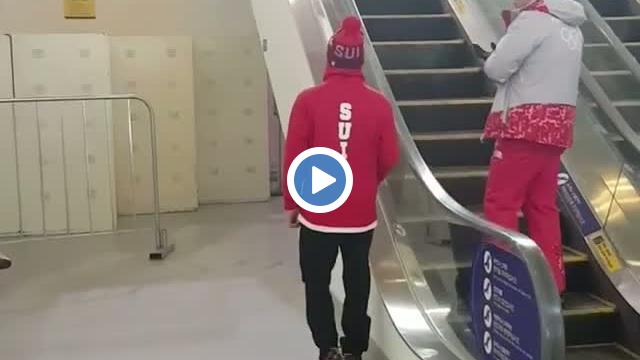 İsviçreli kayakçı Fabian Bösch'ün yürüyen merdiveni kullanış tarzı herkesi şaşırttı