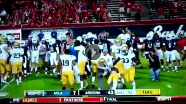 ABD'de UCLA Bruins ile Arizona Wildcats arasında oynanan maçta hakem kıyafeti giyen bir taraftarın sahaya girmesinin ardından ortalık bir anda karıştı.Yorumlar