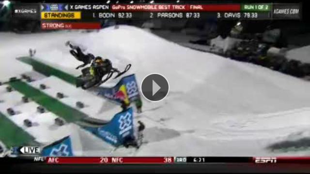 Colorado Aspen'de düzenlenen X Games'te Jackson Strong'un kar motosikleti atlayışı sonrası aracın gaz pedalı takılı kalınca seyirciler korku dolu anlar yaşadı. Motosiklet hızla seyircilerin olduğu bölüme yöneldi ancak güvenlik bantları olası bir faciayı önledi. Kaynak:Yorumlar