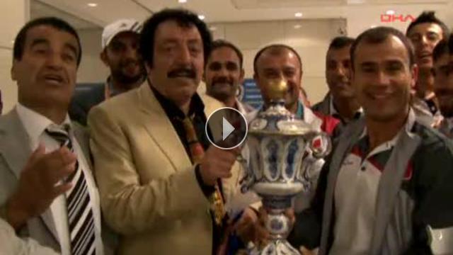 Rusya'nın Kaliningrad kentinde düzenlenen 2012 Ampute Futbol Dünya Kupası'nda üçüncülük kupasını kaldıran milli takımımız yurda döndü. Milli takım oyuncularıyla havalimanında karşılaşan ünlü sanatçı Müslüm Gürses, DHA mikrofonunu eline alıp oyuncularla röportaj yaptı. Kaynak:Yorumlar