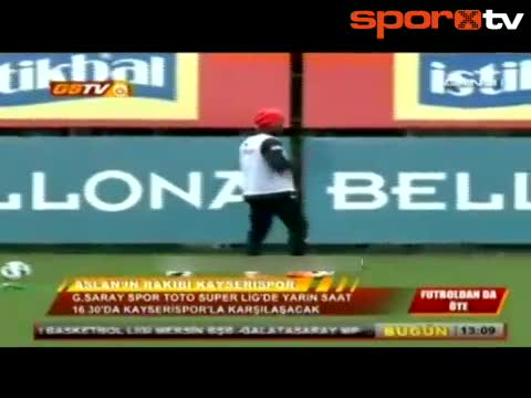 Galatasaray'ın yıldız futbolcusu Didier Drogba, Kayserispor maçından önceki antrenmanın ardından Yekta Kurtuluş ile frikik çalıştı.