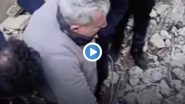 Kahramanmaraş'ta bir itfaiye eri, enkaz altından çıkarılan yaşlı adama kendi botlarını giydirdi.