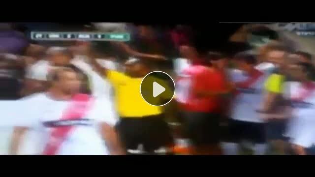 Peru'da Universitario karşısına çıkan Melgar ekibi oyuncusu kendisine kırmızı kart gösteren hakemi tokatladı.