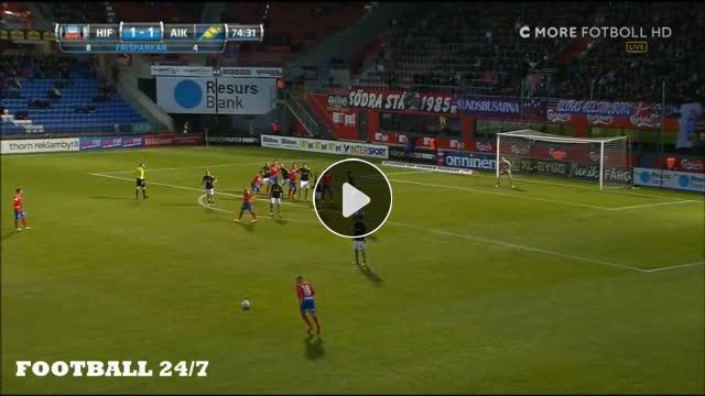 Helsingborg forveti Jordan Larsson AIK karşısında akıl dolu bir frikik golüne imza attı.