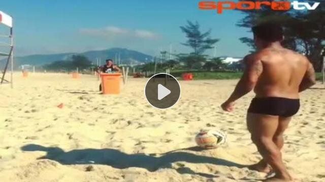 Eski Trabzonsporlu Alanzinho tatilde çöp kovasına ayağıyla attığı topla beğeni topladı.
