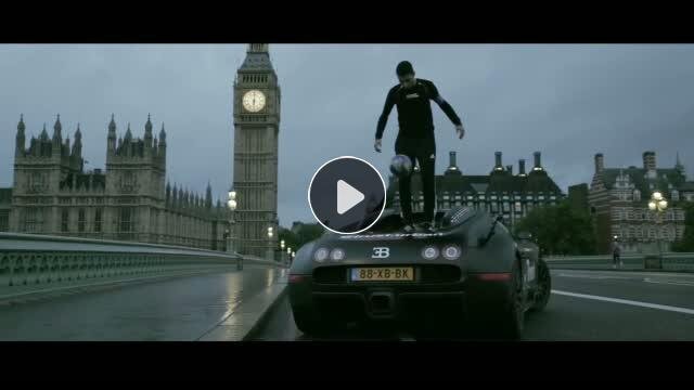 Freestyle futbolcu Soufiane Touzani Londra'da Big Ben manzarasında çıktığı bir Bugatti Veyron üzerinde şovunu yaptı.
