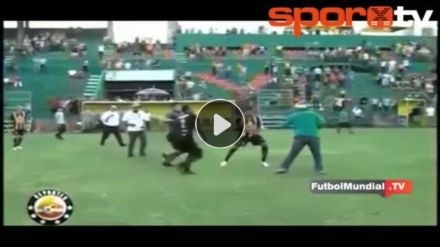 Honduras'ta oynanan bir maçta çıkan olayda Marlon Pena, attığı uçan tekmeyle bir anda gündeme oturdu..