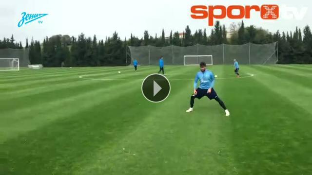Zenit'in Brezilyalı yıldızı Hulk antrenmanda kaleye geçti ve muhteşem bir kurtarışa imza attı.